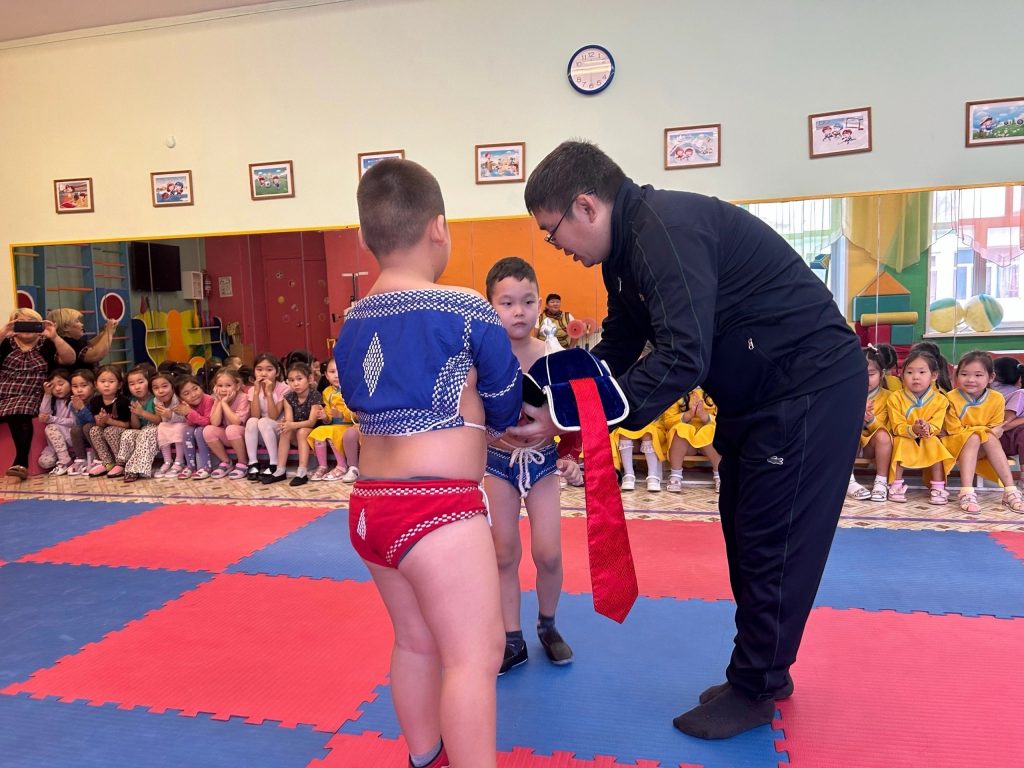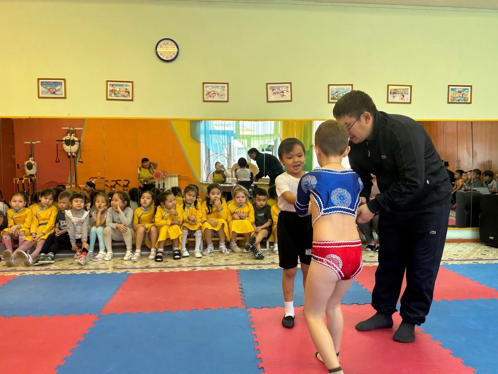 В нашем детском саду 15.11.2024 года прошли спортивные соревнования по национальной борьбе «Хуреш», среди мальчиков подготовительных групп (14 детей) по проекту Министерства образования РТ «Хуреш в детские сады».