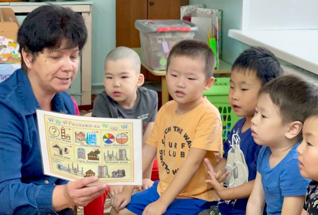 Елена Александровна Захарова — педагог- проводит занятие в игровой и интерактивной форме. Такое сочетание формирует у детей интерес к изучению материала, повышает уровень их активности и способствует социализации в группе.