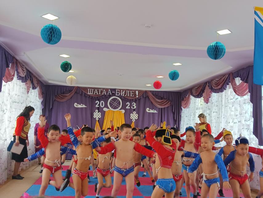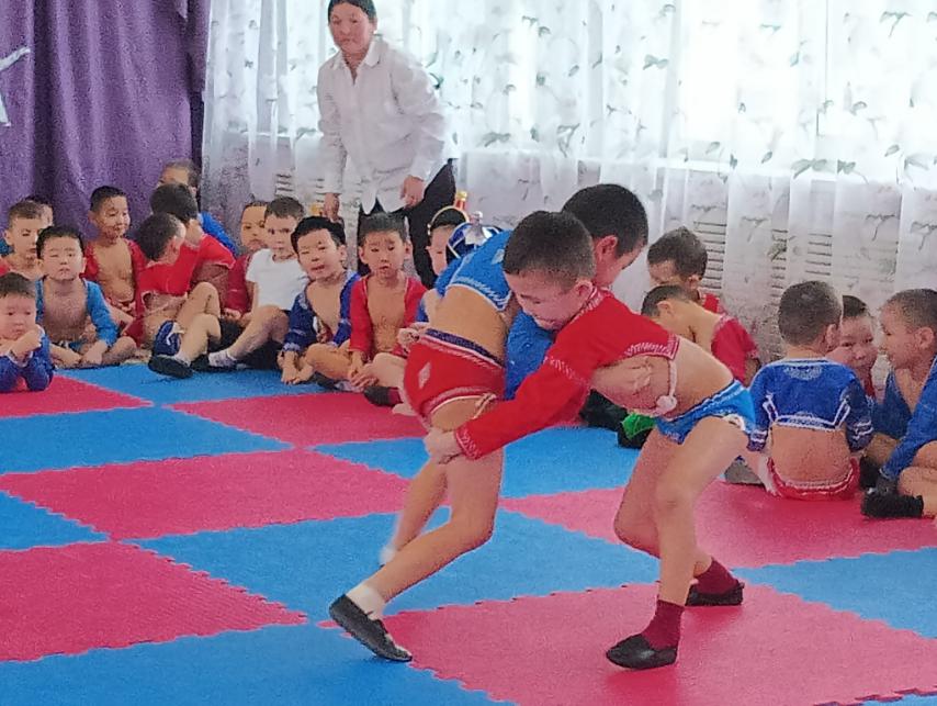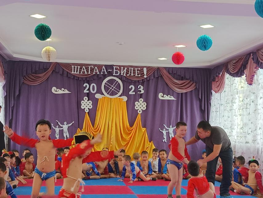 В МАДОУ — детский сад 34 «Светлячок» 14.02.2023 г прошли спортивные соревнования по национальной борьбе «Хуреш» в честь национального праздника «Шагаа» среди мальчиков старших и подготовительных групп (42 ребенка) по проекту Министерства образования РТ «Хуреш в детском саду»