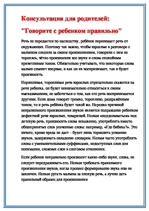 КОНСУЛЬТАЦИИ ДЛЯ РОДИТЕЛЕЙ