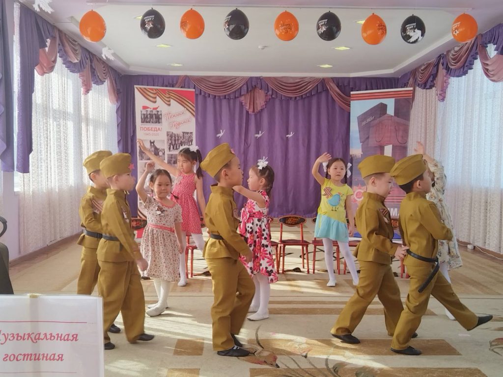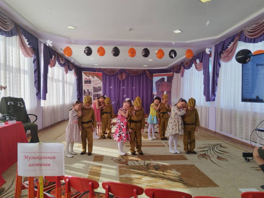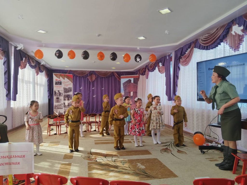 В рамках реализации годового плана в детском саду прошло музыкальное занятие по патриотическому воспитанию. Целью которого было воспитание патриотических чувств к Родине, своему народу, ветеранам Великой Отечественной Войны.