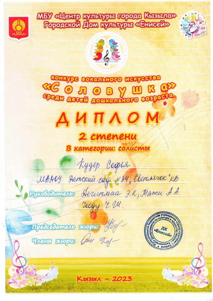 Конкурс вокального искусства «Совушка» среди дошкольного возраста.
